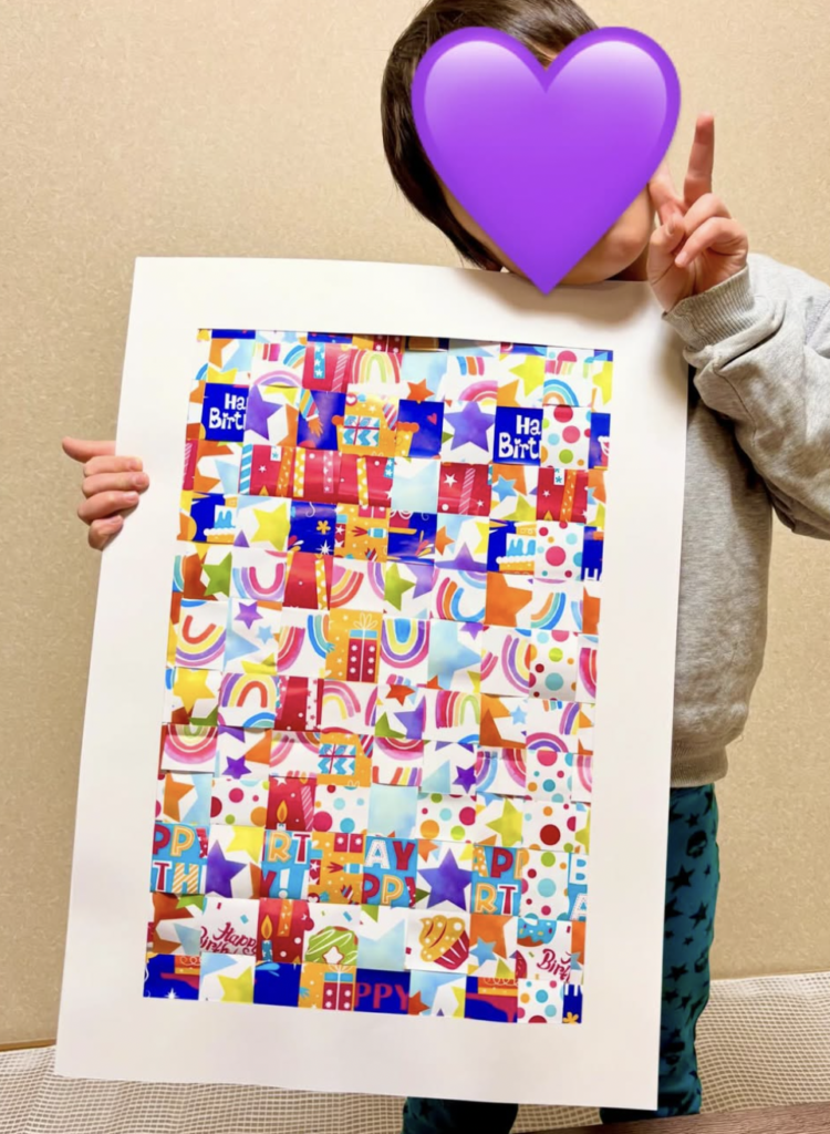 1月のテーマは「包装紙編み込みアート」でした🌈